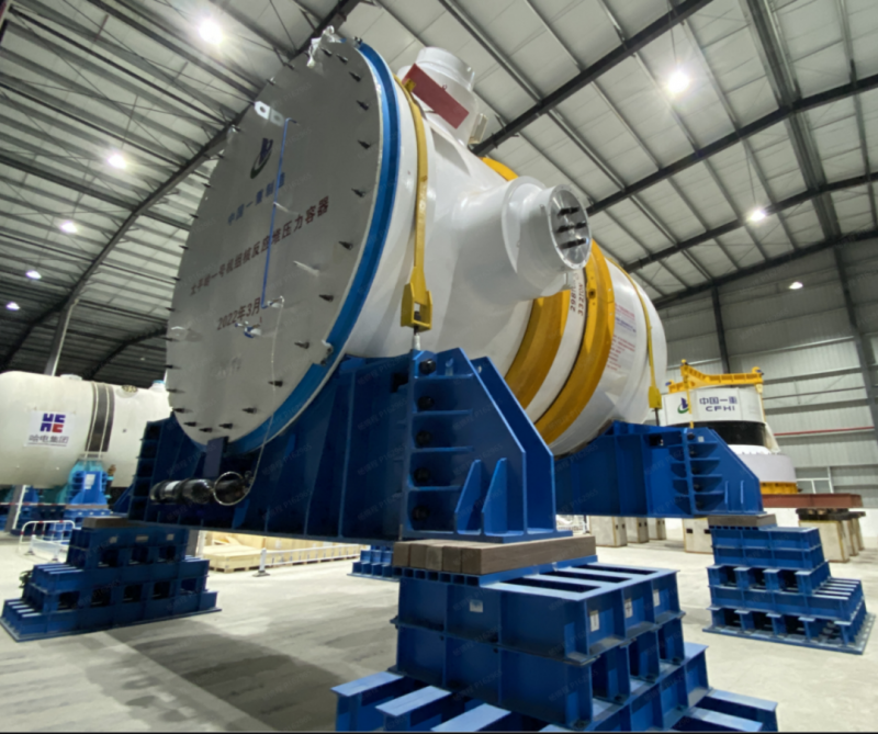 2022年10月26日上午10時,太平嶺一期工程1號機組反應堆壓力容器從1號機組臨時龍門架區域0m吊運至+17.5m轉運平臺,標志著1號機組核島主回路設備安裝工作正式開始,較原計劃提前近2個月時間,再創華龍高質量標桿。