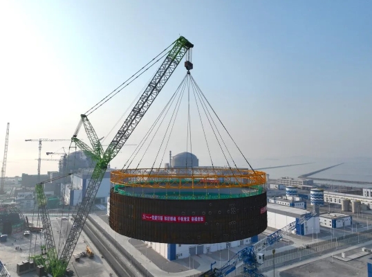 漳州核電4號(hào)機(jī)組反應(yīng)堆廠房安全殼鋼襯里模塊三吊裝成功