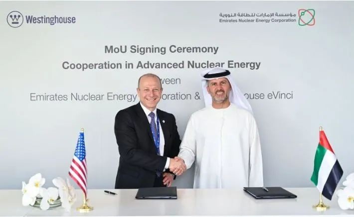 阿拉伯聯合酋長國阿布扎比 – 2023年12月5日 – 西屋電氣公司宣布與阿聯酋核能公司(ENEC)簽署諒解備忘錄(MoU),以探討eVinci? 微堆在阿聯酋的部署。該諒解備忘錄是在迪拜舉行的第28屆聯合國氣候變化大會(COP28)上簽署的,是對核能在加速全球脫碳方面所發揮作用的認可。