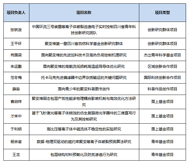 本次資助項目涵蓋創新群體、杰青項目、面上項目、青年項目、區域創新、國際合作、科普創作等多個領域。西物院將依托項目支持,以強大的科研實力和創新激情,為聚變領域注入新的活力,助力推動科研探索創新。