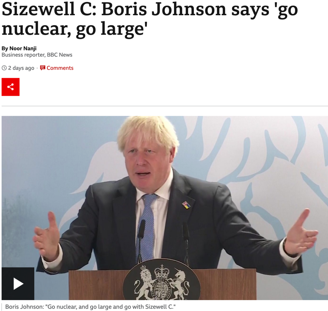 為應對能源危機,即將離任的約翰遜首相為英國新建核電站提供資金