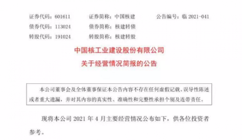 據中國核建公告顯示其子公司中國核工業華興建設有限公司與中廣核工程有限公司簽署廣東陸豐核電廠 5、6 號機組核島土建工程合同,合同金額 40.96 億元。