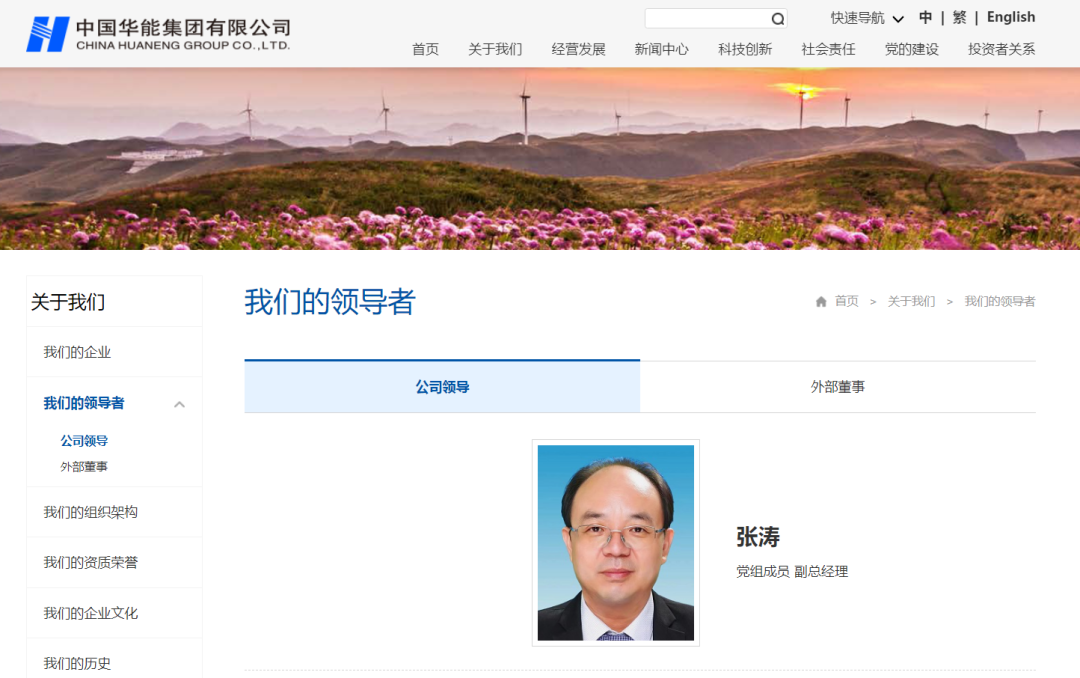 據(jù)中國華能集團官網(wǎng)公開信息顯示,張濤已任中國華能集團黨組成員、副總經(jīng)理。
