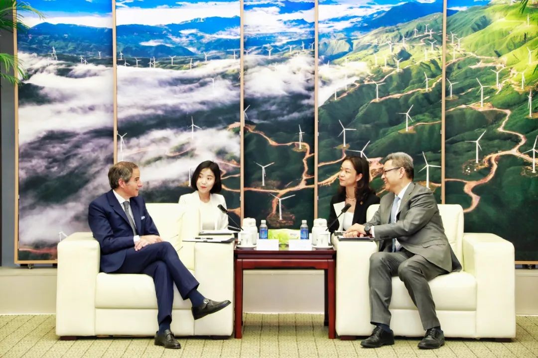 5月26日,國家電投黨組書記、董事長錢智民在總部與國際原子能機構總干事格羅西舉行會談。國際原子能機構副總干事劉華,國家原子能機構秘書長鄧戈,國家電投黨組成員、副總經理盧洪早參加會見。