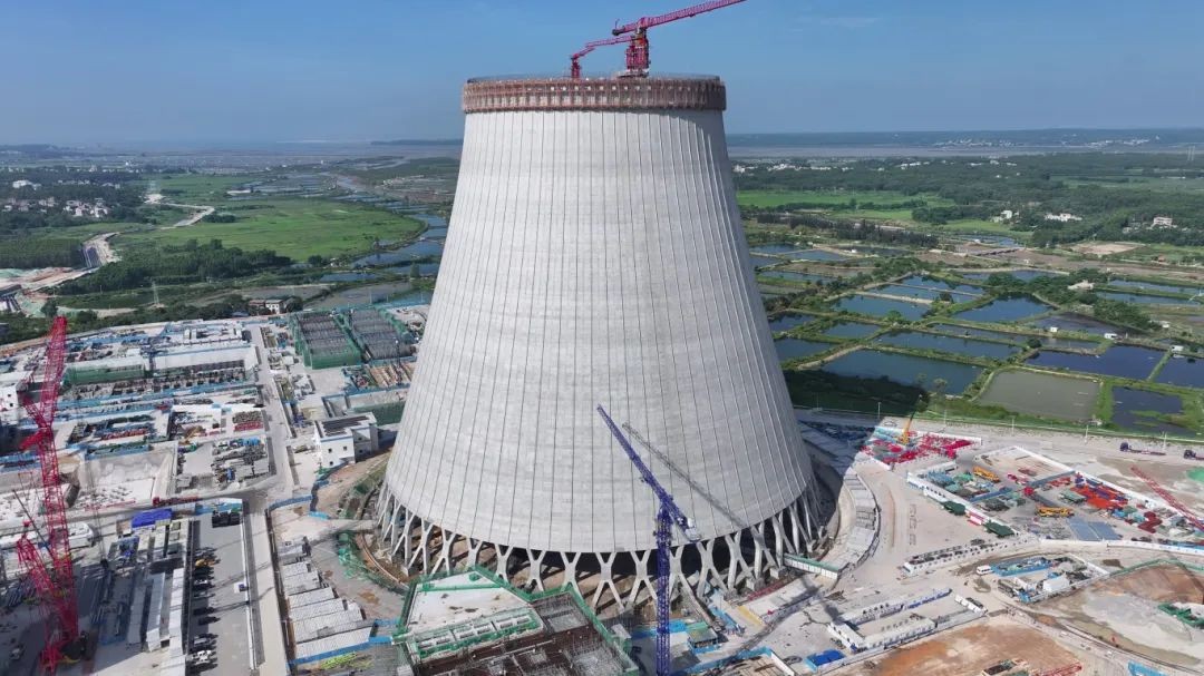 6月2日,世界核電第一大塔——國家電投廣東廉江核電項目1號機組冷卻塔筒壁第100節混凝土澆筑順利完成,塔體高度達到161米,標志著冷卻塔主體結構穩步成型,為后續雙曲線收束段施工奠定了堅實基礎。廉江核電項目在我國核能領域首次開發使用超大型冷卻塔,一期工程建設兩臺CAP1000三代核電機組,每臺機組配置一座逆流式自然通風高位集水塔,塔高218.7米、零米直徑約174.5米,單塔淋水面積20000平方米。1號機組冷卻塔是世界首個核電超大型高位集水海水...