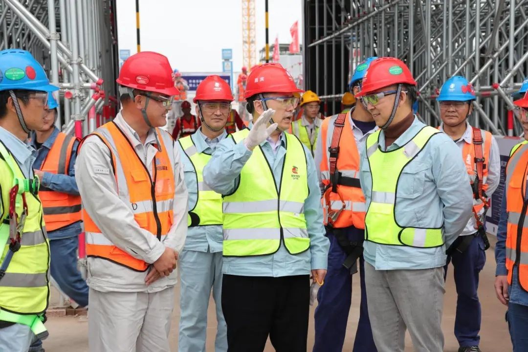 在廉江核電項目,李曉明深入施工現場,充分了解項目進展、施工組織設計及早拆智能組合臺車、模塊化施工等新工藝、新技術應用情況。