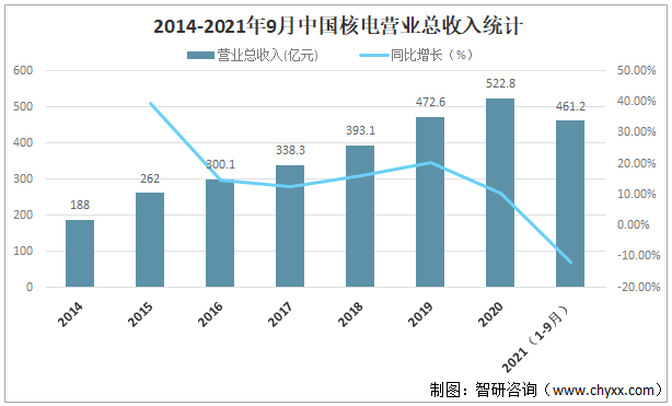 2021年前三季度,中國核電累計商運發電量1362.14億千瓦時,同比增長22.92%。核電機組發電量累計為1291.72億千瓦時,同比增長20.06%。