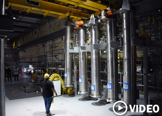 美國漢福德(Hanford)廢物處理與固化廠最近完成了起泡器的測試。起泡器用于將放射性廢物和化學(xué)廢物轉(zhuǎn)化為玻璃形式,以便安全處置。工人定期將起泡器移出熔爐進行維護。