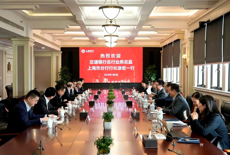 1月9日上午,交通銀行股份有限公司(以下簡稱“交通銀行”)業務總監、上海分行黨委書記、行長涂宏到訪上海電氣,與上海電氣集團黨委書記吳磊就深化戰略合作深入交換意見。上海電氣集團黨委副書記、總裁劉平出席。