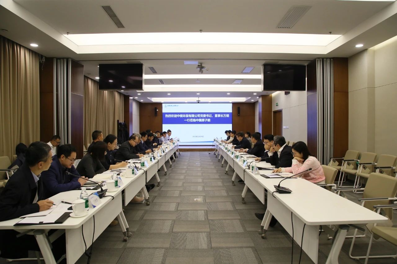 11月24日上午,中核環保有限公司黨委書記、董事長萬鋼,總經理、黨委副書記趙翼鑫一行赴中國原子能工業有限公司(以下簡稱“中國原子能”)交流調研。中國原子能黨委書記、董事長薛小剛主持座談會議。