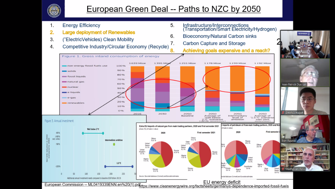 2022年5月19日上午,中核集團(tuán)碳達(dá)峰碳中和研究中心(中核戰(zhàn)略規(guī)劃研究總院,以下簡(jiǎn)稱(chēng)雙碳研究中心)與美國(guó)匹茲堡大學(xué)研究人員就“雙碳”目標(biāo)下的核能發(fā)展開(kāi)展在線學(xué)術(shù)交流。匹茲堡大學(xué)卡茨商學(xué)院Jean-Patrick Ducruet教授、Ravi Madhavan教授、Thomas Rawski教授及Kaeru Shimizu教授等人參加交流。總院副院長(zhǎng)白云生主持會(huì)議,戰(zhàn)略所相關(guān)研究人員參加討論。