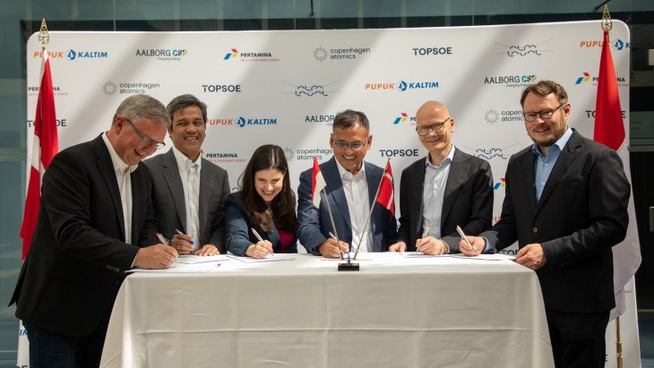 四家丹麥公司--哥本哈根原子公司、奧爾堡CSP公司、阿法拉伐公司和托普索公司--已經與印度尼西亞氨氣生產商Pupuk Kalimantan Timur(PKT)以及Pertamina New & Renewable Energy公司簽署了一份諒解備忘錄,調查在東加里曼丹省婆羅洲島東海岸的Bontang市建設一座設施。