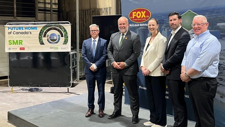 建筑公司Aecon與制造商和建造商ES Fox Limited合作,在安大略省發電(OPG)達靈頓工廠為加拿大首個電網規模小型模塊化反應堆(SMR)制造鋼部件。Aecon是Darlington項目的所有施工服務提供商,與OPG、GE Hitachi Nuclear Energy(GEH)和SNC-Lavalin共同組成綜合項目交付(IPD)合作伙伴關系。