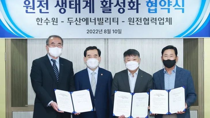 2022年8月10日,韓國產業通商資源部(MOTIE)與韓國水電核電公司(KHNP)、斗山能源(Doosan Enerbility)及多家核級設備和材料制造商簽署諒解備忘錄,旨在振興韓國核工業。