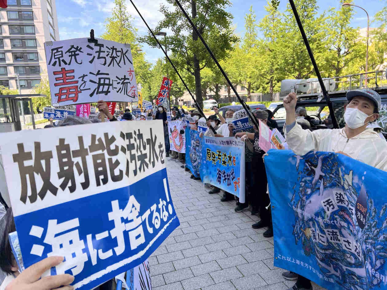 日本東電公司門前民眾集會反對福島核污染水排海計劃