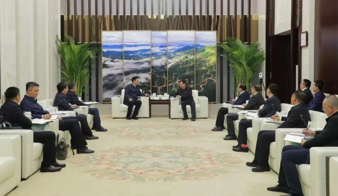 3月27日,國家電投黨組書記、董事長劉明勝在總部會見遼寧省阜新市委書記胡濤,就進一步深化合作進行交流。