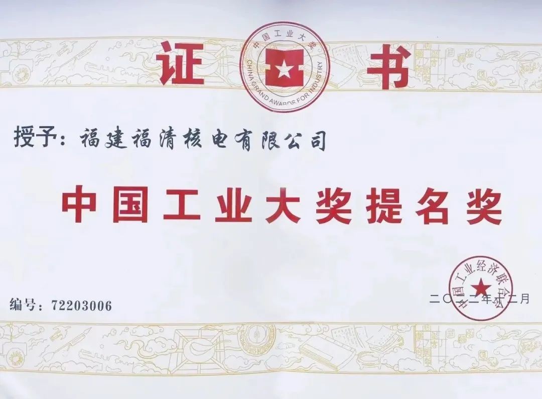 首個!中國核電成員公司福清核電榮獲第七屆中國工業大獎提名獎