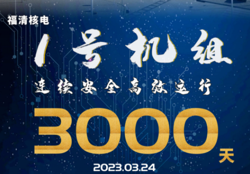 2023年3月24日,“中國電力行業標桿核電機組”——中核集團旗下中國核電投資控股的福清核電1號機組實現連續安全高效運行3000天,穩定運行時長位列中核集團運行核電機組第一名,創造世界同類型機組一流運行業績!