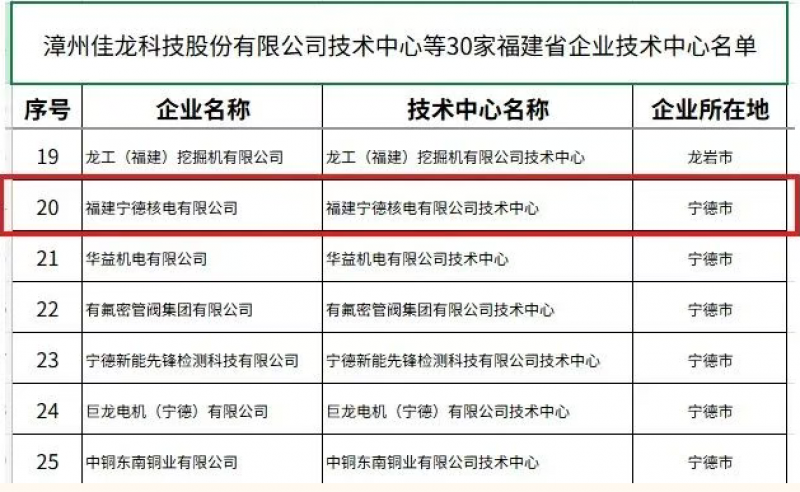 寧德核電獲評(píng)福建省企業(yè)技術(shù)中心