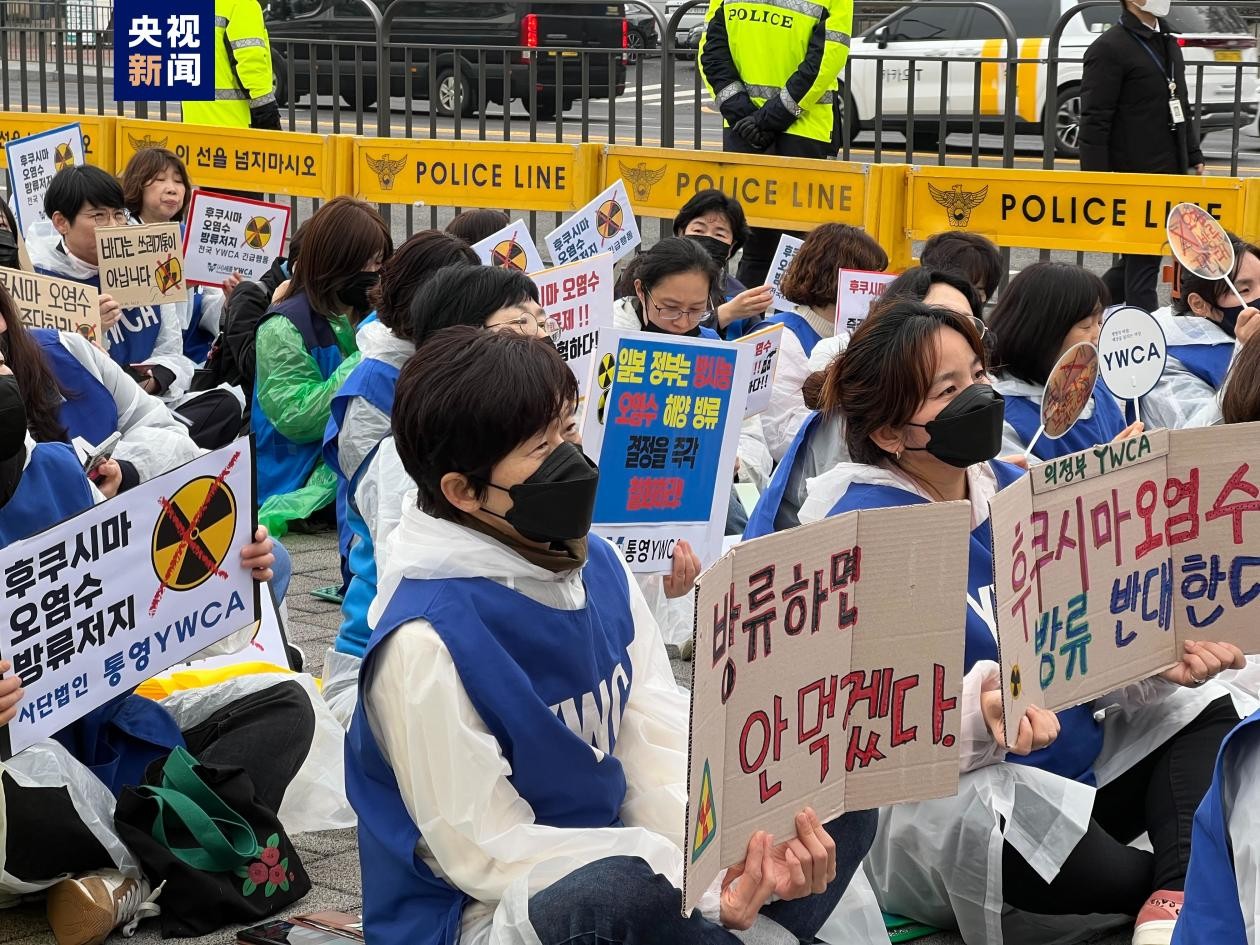 韓國市民團體在總統府前集會 呼吁禁止福島核污染水排海