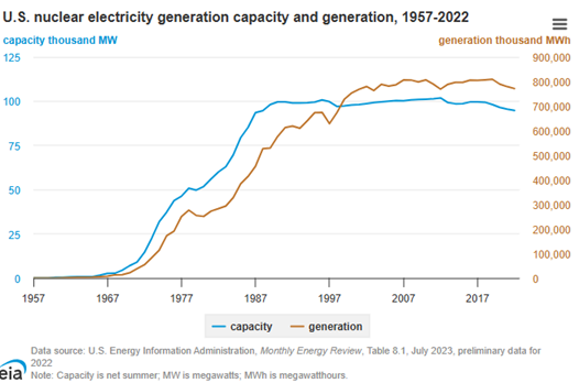 過去幾十年來,美國新建核電站的規模很小。佐治亞州格林斯博羅沃格特爾核電站 3 號和 4 號機組分別于 2023 年和 2024 年投入使用,這是近十年來的首批新項目。