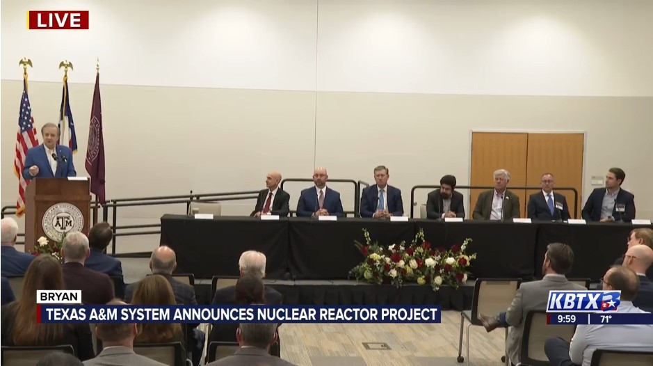 德克薩斯 A&M 大學系統宣布,其意圖是將校園附近的土地提供給幾家核反應堆公司建造小型模塊化反應堆 (SMR),從而為該州電網帶來更多的核電。