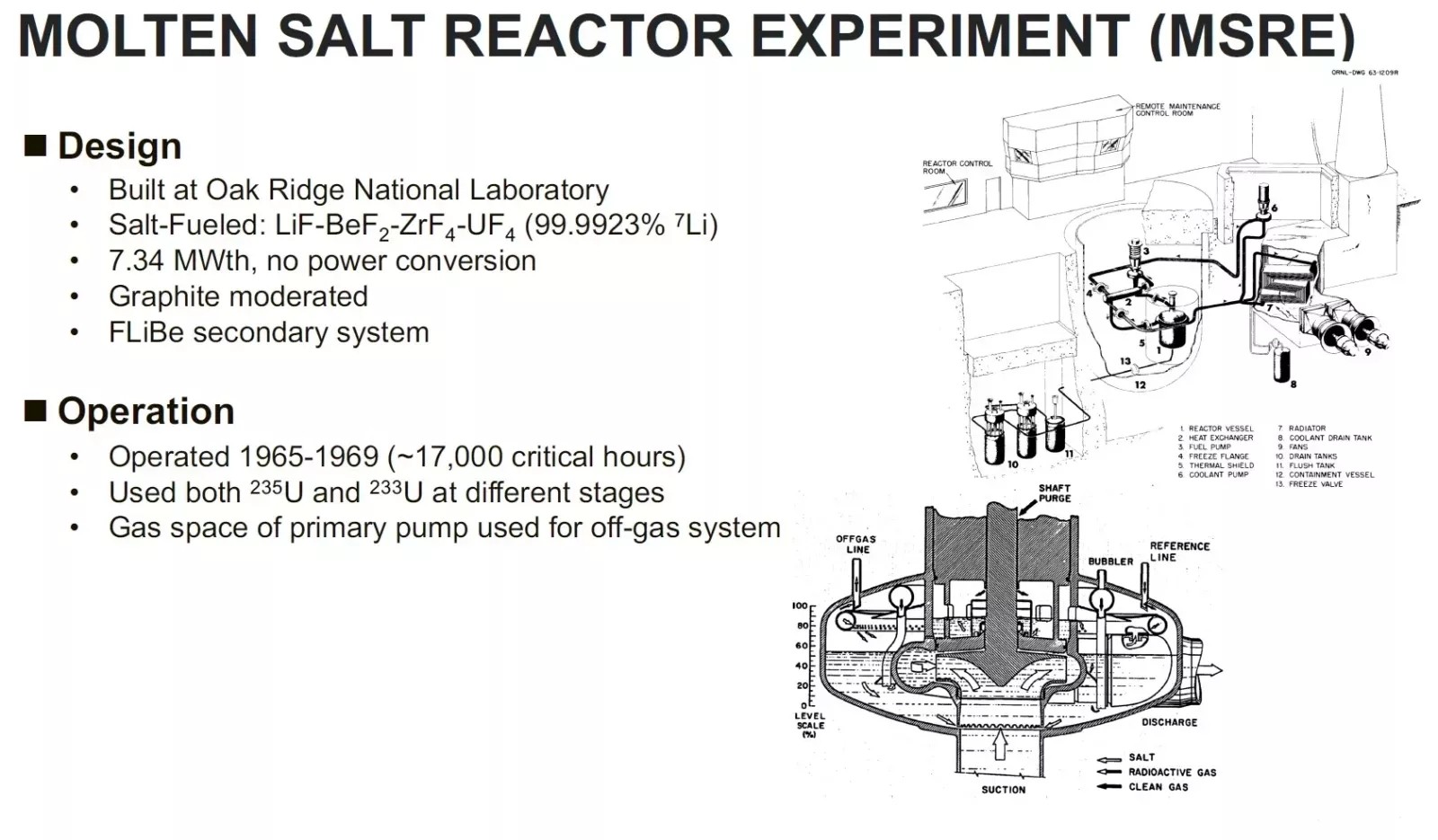 美國(guó)能源部正在向大學(xué)、公司和組織征求關(guān)于可能使用 2 噸液態(tài)鹽作為 MSRE 熔鹽反應(yīng)堆二次回路中的工作流體的建議。MSRE 反應(yīng)堆于 1965 年至 1969 年在橡樹嶺國(guó)家實(shí)驗(yàn)室運(yùn)行。主 MSRE 回路使用 7LiF-BeF2-ZrF4-UF4 鹽(摩爾分?jǐn)?shù) 65/29.1/5/0.9%)。在第二個(gè)回路中 - 鹽 7LiF-BeF2(摩爾分?jǐn)?shù) 66/34%)。目前,這種鹽儲(chǔ)存在幾個(gè)儲(chǔ)罐中。...