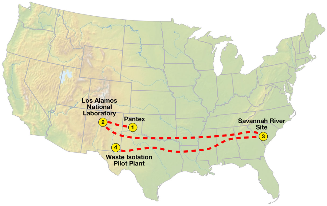 美國廢物隔離中試廠(WIPP)所在的新墨西哥州卡爾斯巴德市的政府和商業界表示支持能源部(DOE)對過剩武器級钚進行稀釋處理的計劃,并共同向州長請愿。根據該計劃,35噸武器級钚將從潘得克斯(Pantex)工廠運至洛斯阿拉莫斯國家實驗室進行稀釋,再運輸至薩凡納河場址進行進一步稀釋,最后運至廢物隔離中試廠進行處置。該計劃將耗時30年,費用為182億美元。