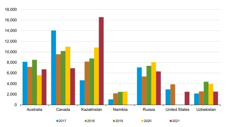 根據美國能源信息署 (EIA) 的數據,2021 年在美國交付的“絕大多數”鈾來自國外。美國經紀人和貿易商持有的鈾庫存連續第二年增長,自 2019 年以來幾乎增長了兩倍。