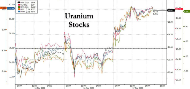 美國能源部近期表示,將對美國核電站提供更多援助。受此利好消息,鈾礦股周四集體上漲。