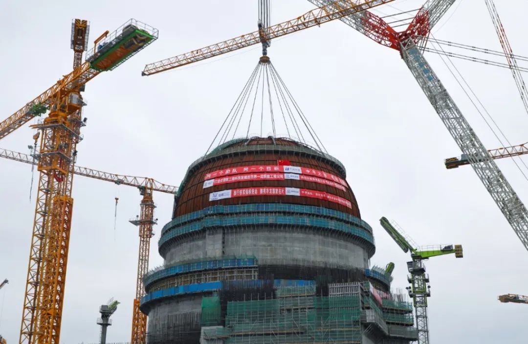 昌江核電“華龍一號(hào)”4號(hào)機(jī)組內(nèi)穹頂?shù)跹b就位