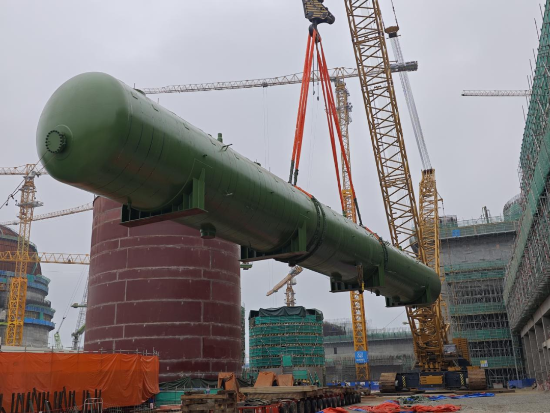 華能昌江核電二期項(xiàng)目3號(hào)機(jī)組除氧器吊裝就位