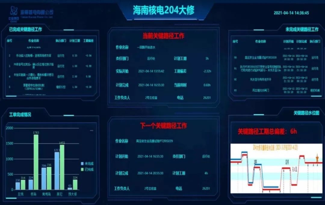 海南核電將“持續(xù)全面推進(jìn)大修優(yōu)化管理”作為年度大修領(lǐng)域精細(xì)化管理的重點(diǎn)任務(wù),不斷創(chuàng)新性開(kāi)發(fā)完善大修信息展示、大修信息跟蹤、大修信息決策等數(shù)智平臺(tái),將大修進(jìn)展與每個(gè)階段信息完美展現(xiàn),為大修工作提供了可視化跟蹤,為大修負(fù)接口管理提供了強(qiáng)大的信息化手段。海南核電大修信息化展示平臺(tái)也是全國(guó)核電首例關(guān)鍵路徑實(shí)時(shí)跟蹤的典范,并作為中國(guó)核電良好實(shí)踐在同行電廠進(jìn)行推廣。