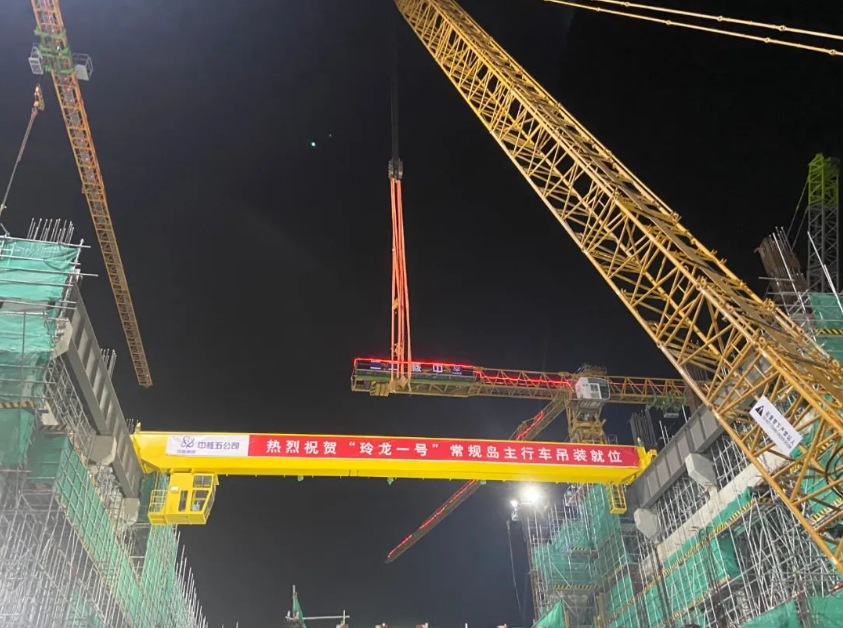 2023年8月16日21時16分,海南昌江核電廠“玲龍一號”小堆科技示范工程環(huán)吊主梁吊裝就位,為后續(xù)主設(shè)備安裝創(chuàng)造了有利條件。
