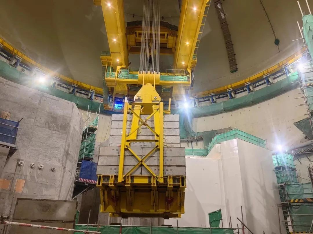 2023年5月9日19時(shí)36分,華能海南昌江核電二期工程3號(hào)機(jī)組環(huán)吊480t安裝小車載荷試驗(yàn)完成,標(biāo)志著二期工程3號(hào)機(jī)組環(huán)吊可用,完成了又一個(gè)重要里程碑節(jié)點(diǎn),為后續(xù)反應(yīng)堆廠房?jī)?nèi)設(shè)備吊裝引入創(chuàng)造了必要條件。